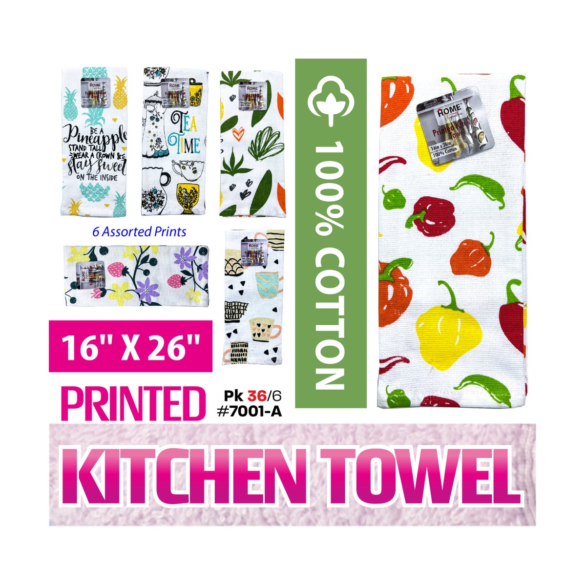 *WB 1398 – 7001-A * Wee’s Beyond 1pk Printed Kitchen Towel 100% Cotton Assorted Prints* * 36PK * 847889070010 *