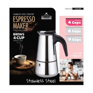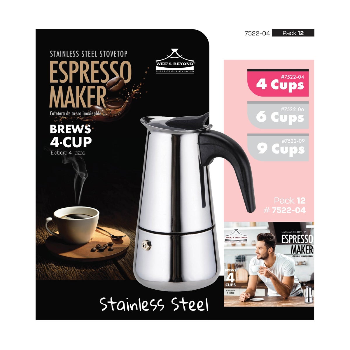 *WB 1498 – 7522-04 * Wee’s Beyond 4 Cup – Stainless Steel Espresso coffee maker CP12* * 12PK * 847889075220
