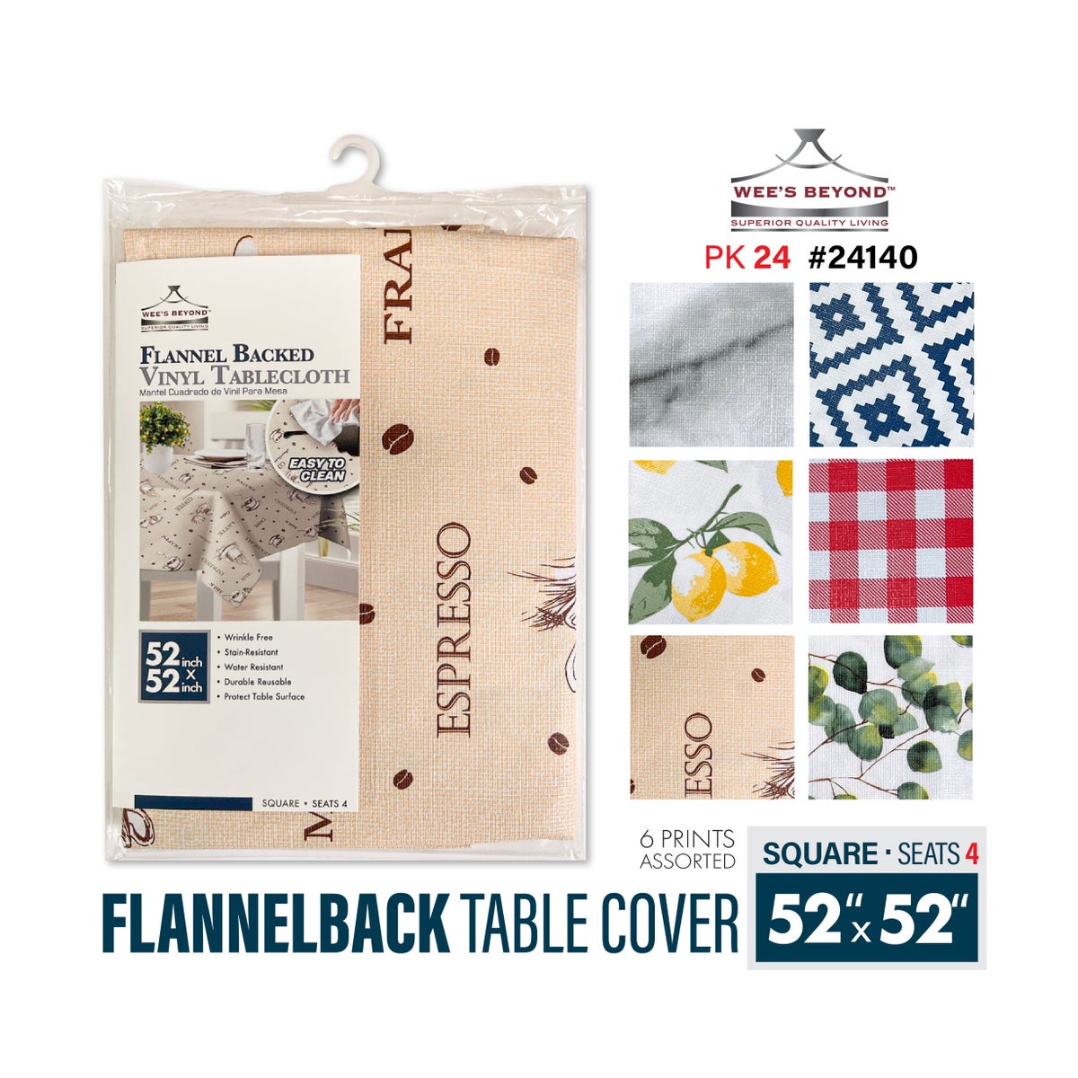 *WB 458 – 24140 * Wee’s Beyond 52″x52″ Square Flannelback Table Cover* * 24PK * 847889004169 *