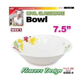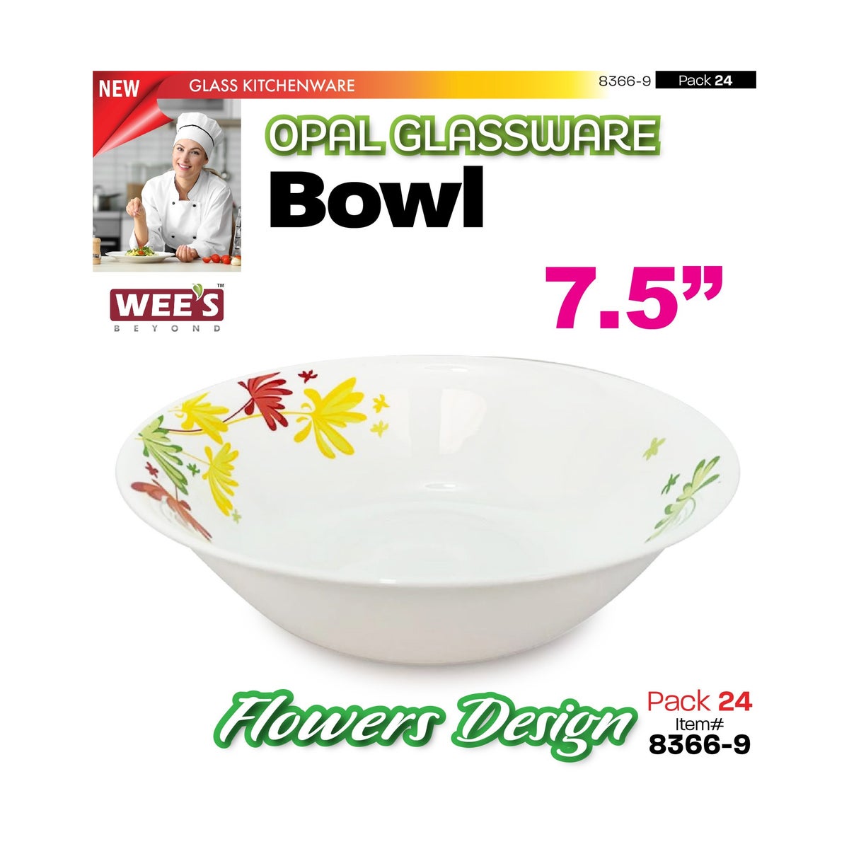*WB 1626 – 8366-9 * Wee’s Beyond Opal Glass 7.5″ Round Bowl – Flowers Design CP24* * 24PK * 847889083669 *