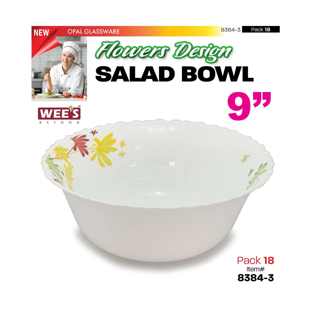 *WB 1643 – 8384-3 * Wee’s Beyond Opal Glass 9″ Salad Bowl – Flower Design CP18* * 18PK * 847889083843 *